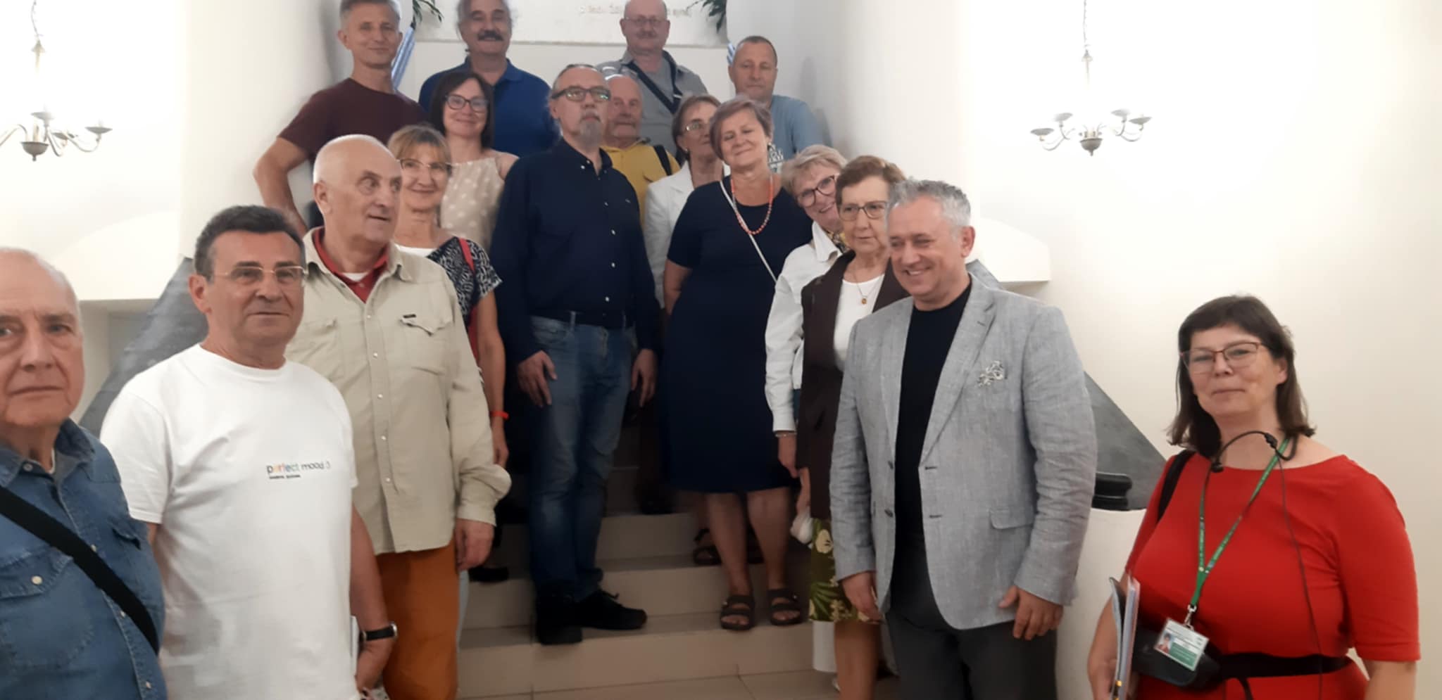 „Najstarsze szkoły siedleckie” – pod takim hasłem odbył się spacer dnia 31 sierpnia z cyklu „Cudze chwalicie, swego nie znacie”. Wędrówkę grupa rozpoczęła przy Pałacu Ogińskich, gdzie od 1923 roku działało Podlaskie Mniejsze Seminarium Duchowne, znane potocznie jako „Biskupiak”. Następnie słuchacze ruszyli wzdłuż dawnej ulicy Szkolnej, noszącej dziś nazwę Konarskiego. Spacerowicze zatrzymali się przy budynku dawnej Siedleckiej Szkoły Uczniów Rzemieślniczych- „Elektryk”, by poznać jej historię. Uczestnicy spaceru usłyszeli także opowieści o innych placówkach, które niegdyś funkcjonowały przy tej ulicy – zarówno o tych, które wciąż istnieją, jak i o tych, które już zniknęły z mapy miasta. Szczególnym punktem spaceru była wizyta w IV LO im. Hetmana Stanisława Żółkiewskiego. Dziękujemy Panu Dyrektorowi za otwarte drzwi, serdeczne przyjęcie oraz podzielenie się niezwykle ciekawą wiedzą o dziejach szkoły, a także o kolejnych planach inwestycyjnych. Szkoła jest żywym muzeum. Reprezentacyjny hol kryje w sobie dokumenty, zdjęcia i popiersie patrona szkoły. W Izbie Pamięci- można poczuć historię minionych pokoleń. Budynek szkoły to przeszłość i przyszłość, to piękna tradycja i nowoczesność. Szkoła ma swoją duszę, urok i piękno. A Pan Dyrektor jest nie tylko gospodarzem, ale także dyrektorem z sercem- człowiekiem , który z troską i pasja dba o swoją szkołę.