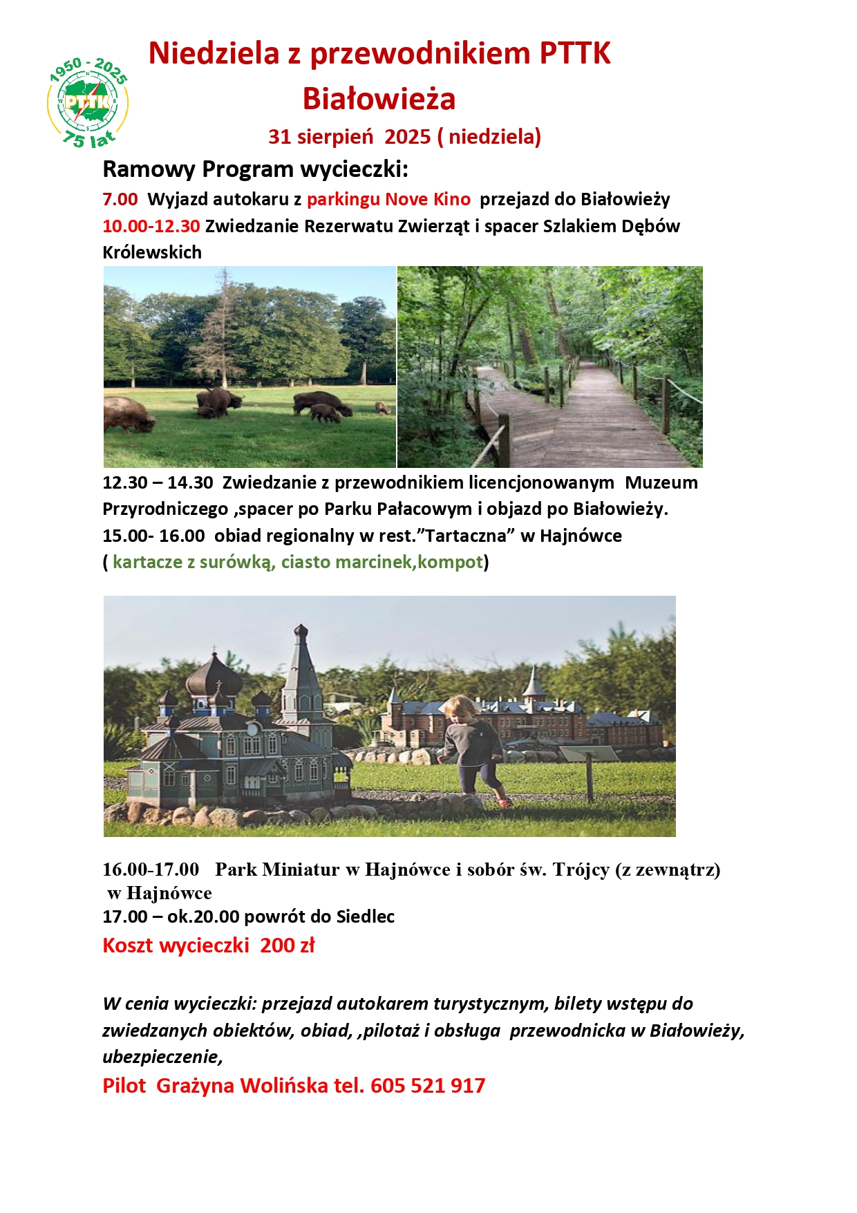 Ze względu na duże zainteresowanie wycieczka do Białowieży zostanie powtórzona 31.08.2025r.